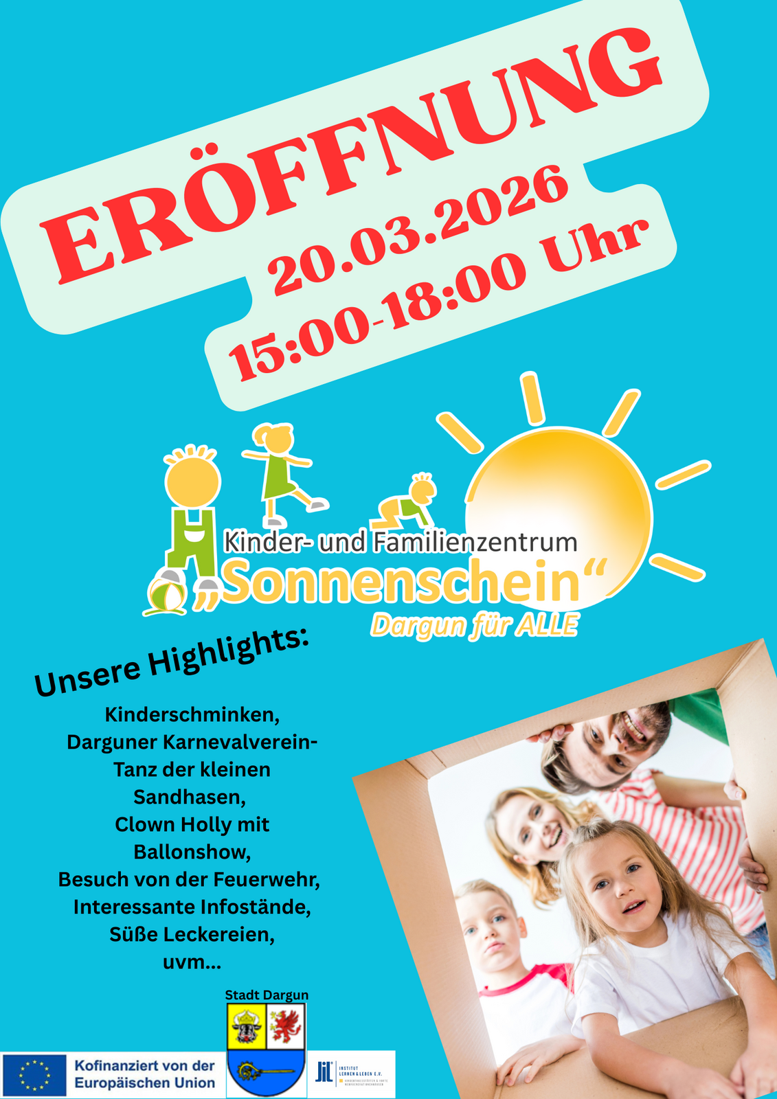 Am Sonntag, 15.02.2026 geht es um 15:11 Uhr (Einlass ab 14:00 Uhr) ebenfalls in der Festhalle mit dem legendären Darguner Kinderfasching weiter.